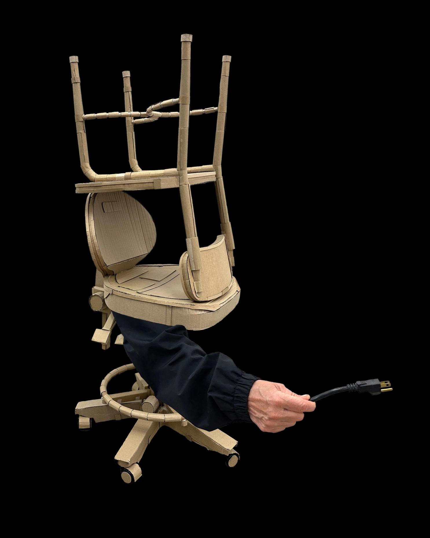 SA: Could you talk about your use of material and how you gravitated toward using cardboard to create objects such as trophies, windows, chairs, bookshelves, a whole kitchen, etc.? Do you think of these cardboard objects as “world-building”? (“World-building” is often used as a literary strategy.)